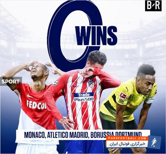 سه تیم موناکو ،دورتموند و اتلتیکومادرید هنوز در رقابت های لیگ قهرمانان بردی نداشته اند