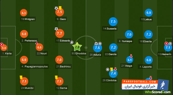 سامان قدوس از نگاه سایت هواسکورد به عنوان برترین بازیکن دیدار اوسترشوند -بیلبائو انتخاب شد
