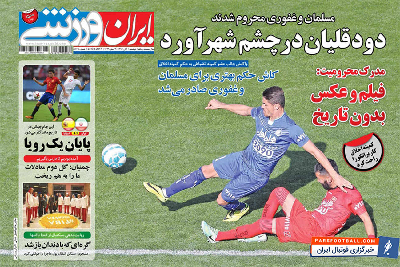 روزنامه ایران ورزشی ، دوشنبه ۱ آبان ؛ دود قلیان در چشم شهرآورد !
