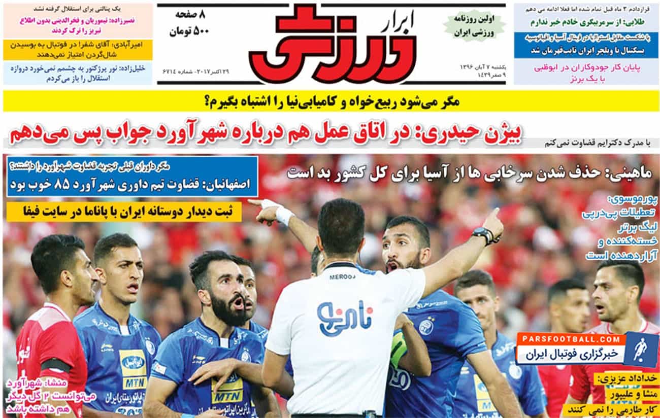 عناوین روزنامه ابرار ورزشی در روز یکشنبه ۷ آبان به شرح زیر است :