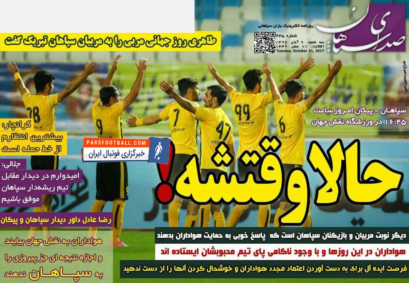 روزنامه صدای سپاهان ، سه‌شنبه ۹ آبان ؛ حالا وقتشه !