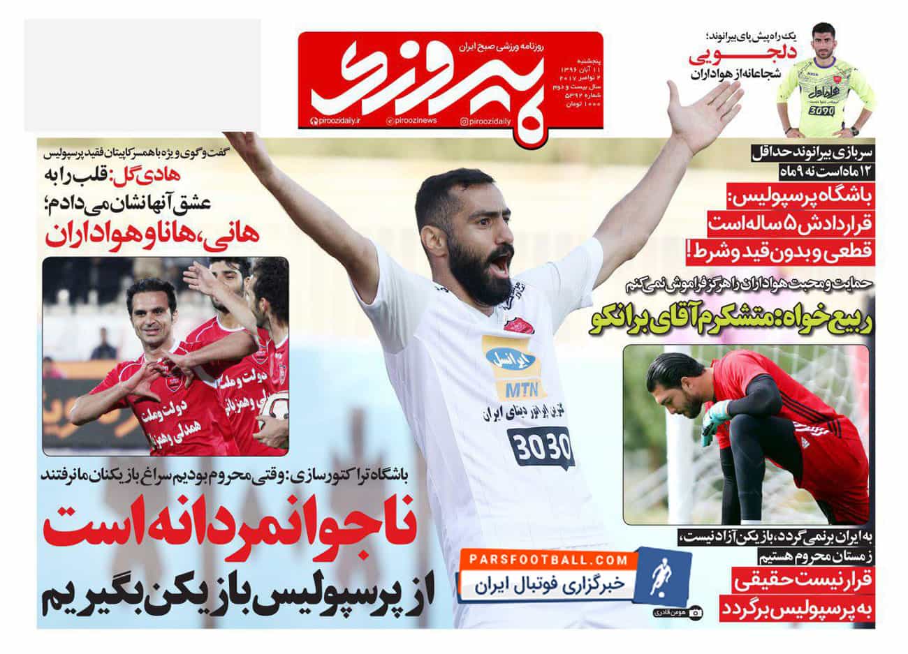 روزنامه پیروزی ، پنجشنبه ۱۱ آبان ؛ متشکرم آقای برانکو !