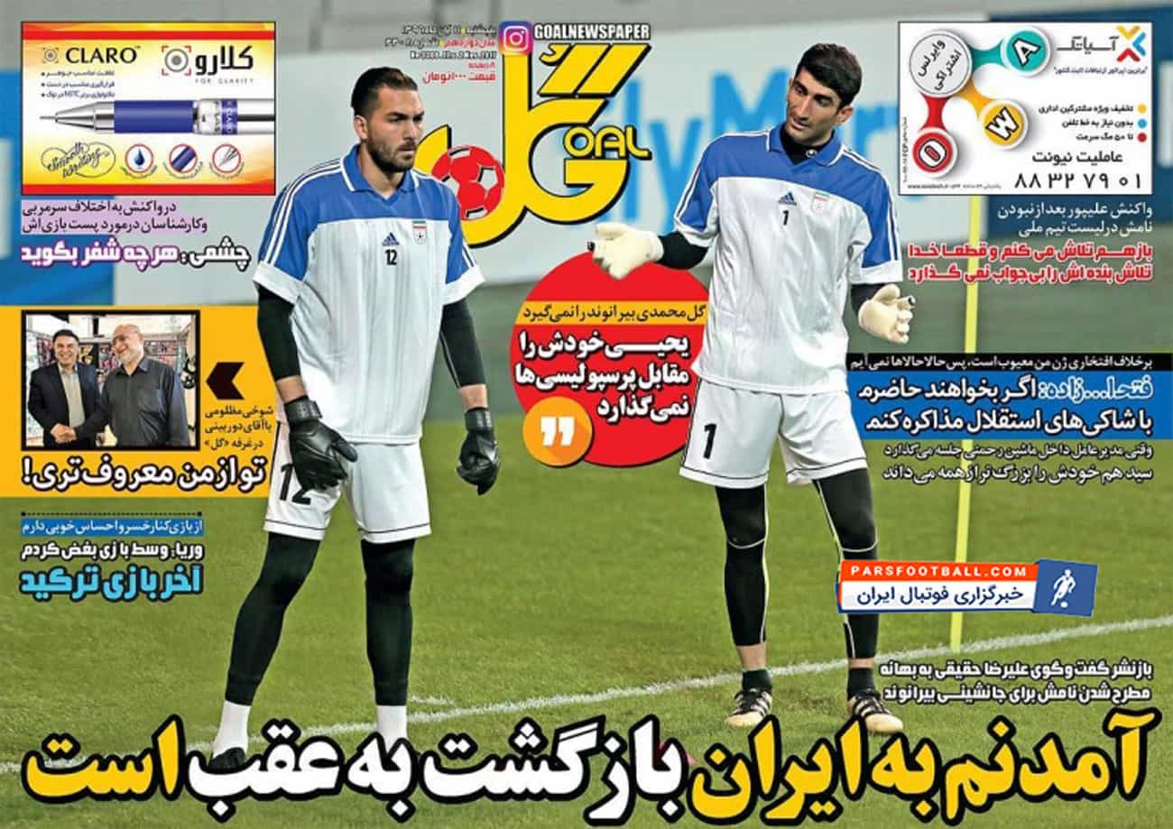 روزنامه گل ، پنجشنبه ۱۱ آبان ؛ هر چه شفر بگوید !