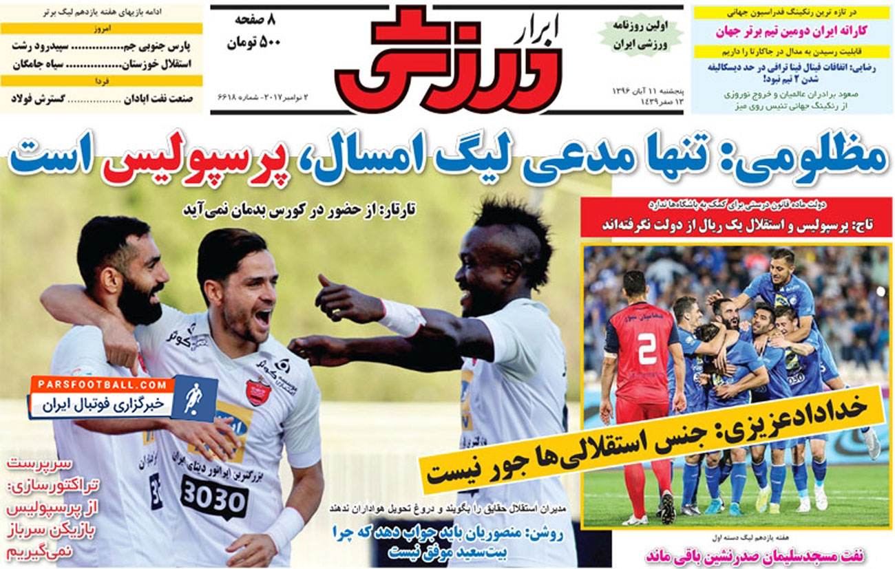 روزنامه ابرار ورزشی ، پنجشنبه ۱۱ آبان ؛ جنس استقلالی ها جور نیست !