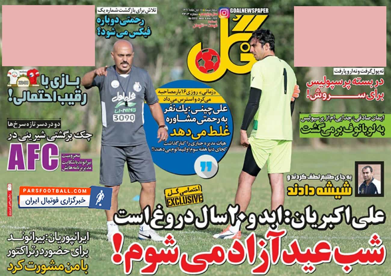 روزنامه گل ، چهارشنبه ۱۷ آبان ؛ رحمتی دوباره فیکس می شود ؟ !