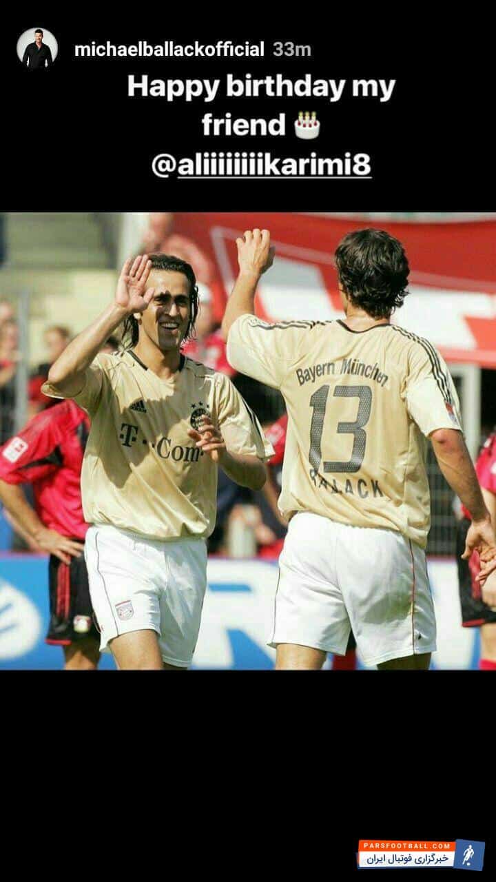 میشاییل بالاک اسطوره فوتبال آلمان در استوری اش تولد علی کریمی را تبریک گفت . بالاک و علی کریمی طی سال های ۲۰۰۵ تا ۲۰۰۷ در باشگاه بایرن مونیخ هم تیمی بودند و رابطه ی بسیار خوبی باهم داشتند.