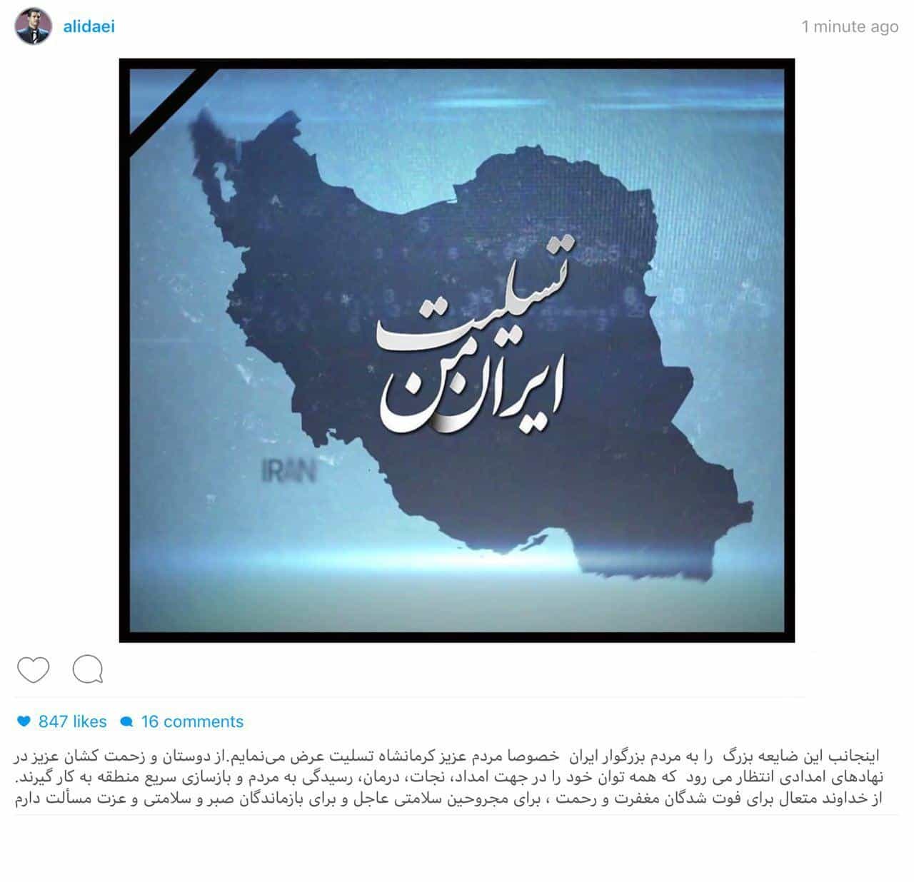 اینستاگرافی ؛ ابراز همدردری “علی دایی” با زلزله زدگان کرمانشاه