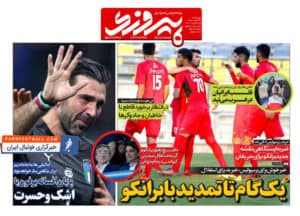 روزنامه پیروزی ، چهارشنبه ۲۴ آبان ؛ یک گام تا تمدید با برانکو !