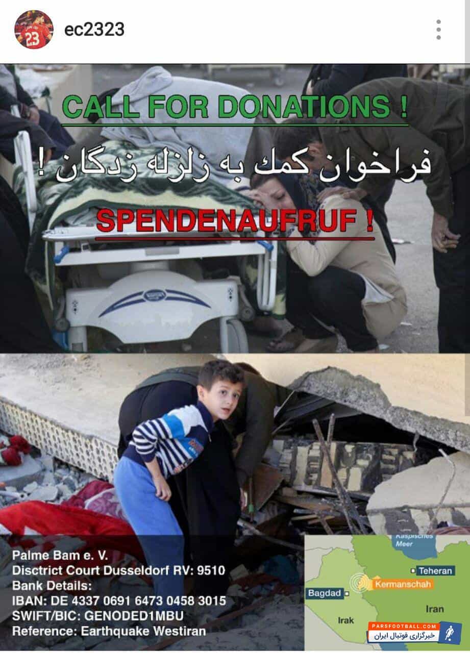 او با انتشار عکس زیر در اینستاگرام خود و ارائه یک شماره حساب برای کمک به زلزله زده ها نوشت: