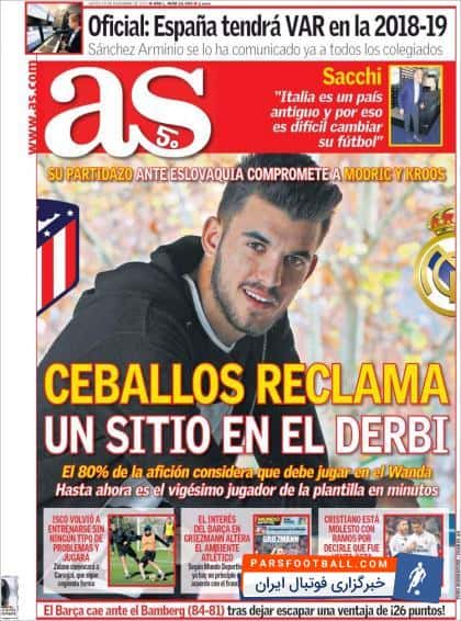 تیتر های نشریهی آس اسپانیا در روز پنجشنبه ۱۶ نوامبر به این شرح است :