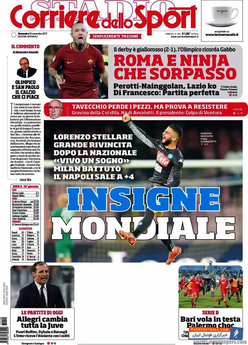 تیتر های نشریهی کوریره دلو اسپورت در روز یکشنبه ۱۹ نوامبر به این شرح است :