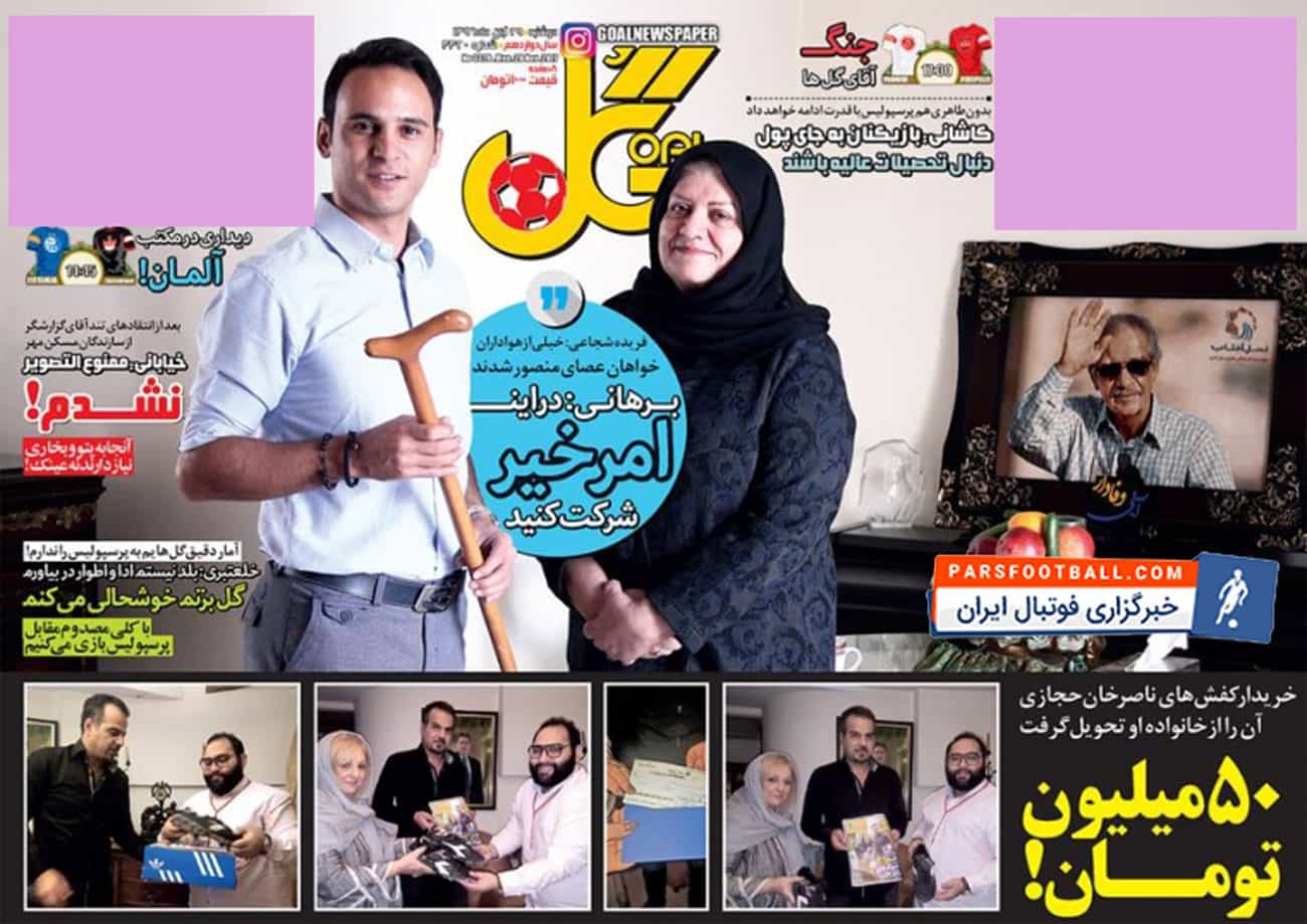 عناوین روزنامه گل در روز دوشنبه ۲۹ آبان به شرح زیر است :