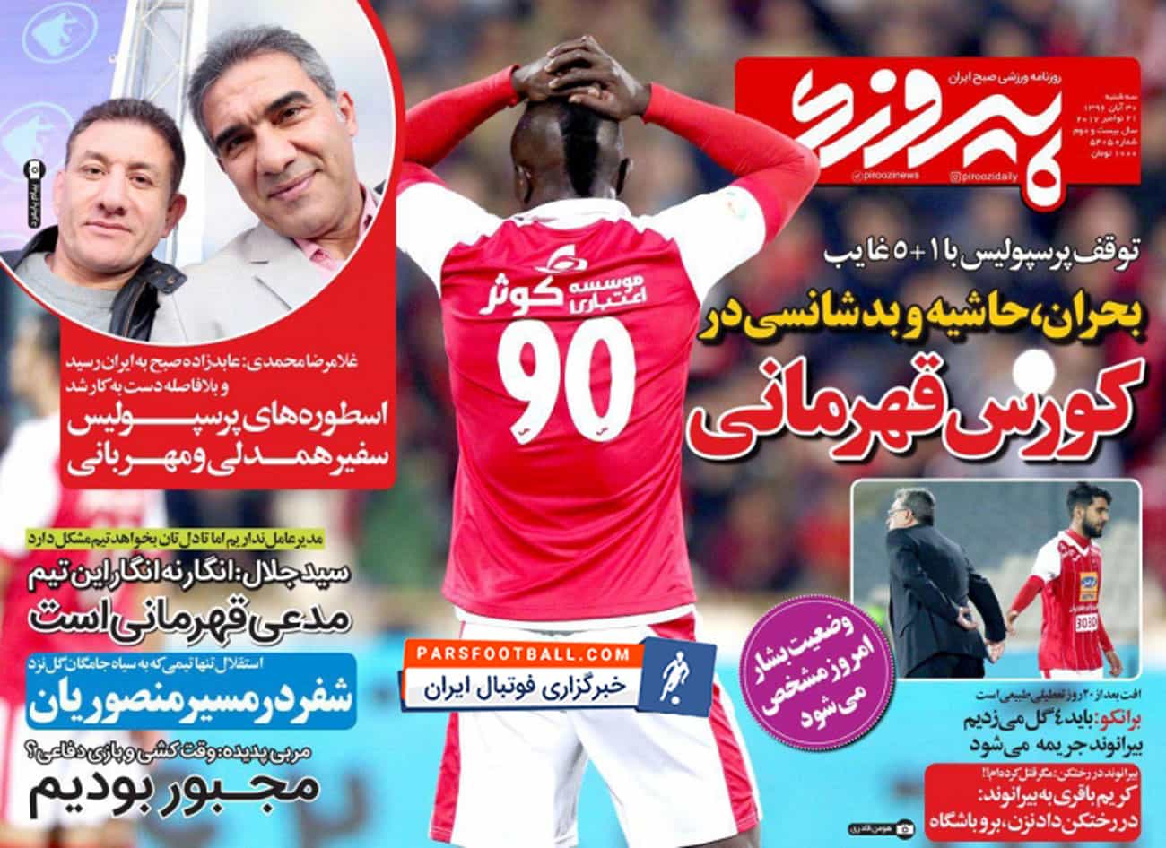 روزنامه پیروزی ، سهشنبه ۳۰ آبان ؛ باید ۴ گل می زدیم !
