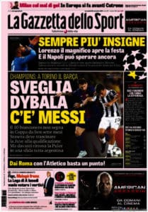 روزنامه گاتزتا دلو اسپورت ، چهارشنبه ۲۲ نوامبر ؛ دیبالا بیدار شو ، مسی این جاست !