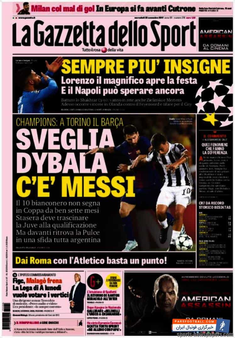 تیتر های نشریهی گاتزتا دلو اسپورت در روز چهارشنبه ۲۲ نوامبر به این شرح است :