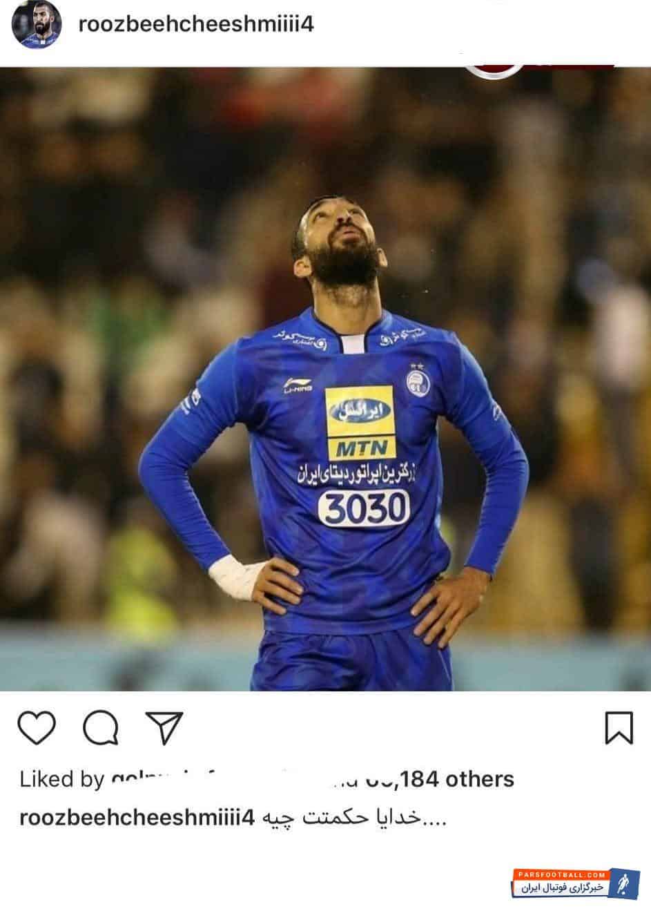 روزبه چشمی بازیکن تیم استقلال تهران درباره تساوی بدون گل تیمش پست جدیدی را در اینستاگرام خود منتشر کرد.