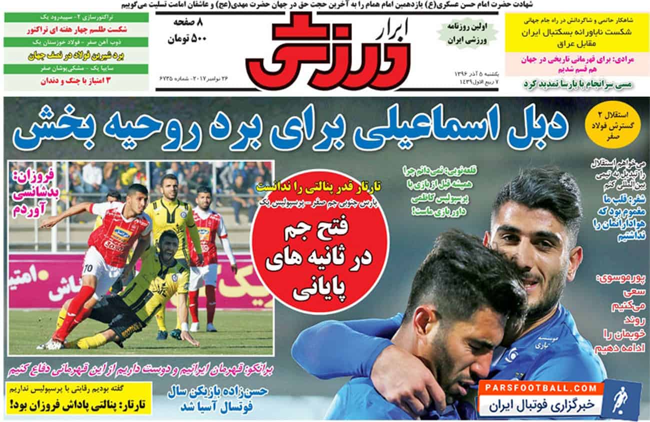 روزنامه ابرار ورزشی ، یکشنبه ۵ آذر ؛ پنالتی پاداش فروزان بود !