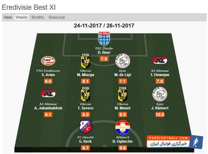 حضور علیرضا جهانبخش در تیم منتخب این هفته لیگ هلند از نگاه سایت هواسکورد