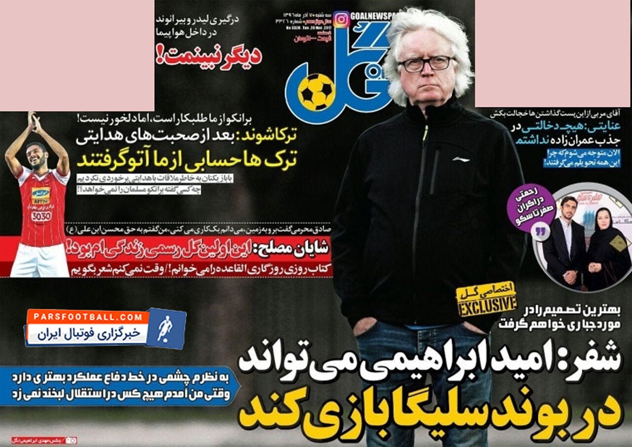 روزنامه گل ، سهشنبه ۷ آذر ؛ امید ابراهیمی می تواند در بوندس لیگا بازی کند !