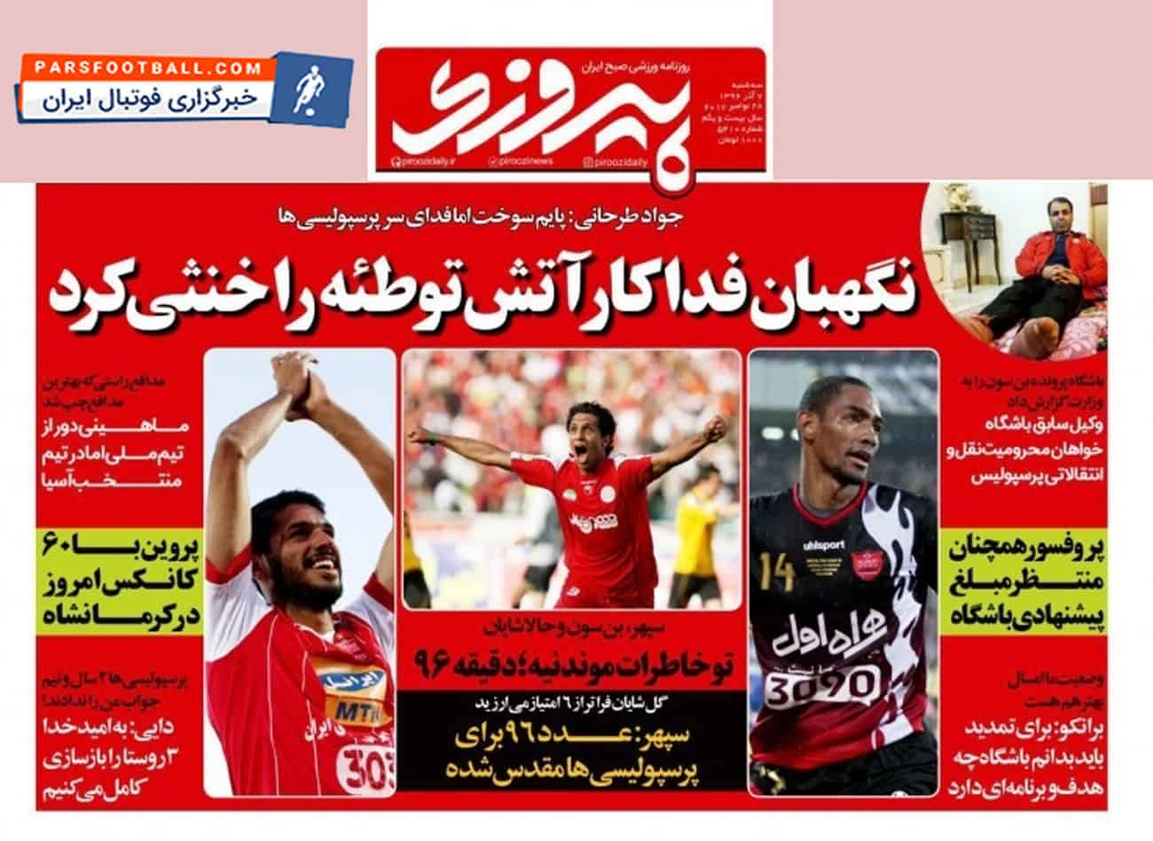 روزنامه پیروزی ، سهشنبه ۷ آذر ؛ نگهبان فداکار آتش توطئه را خنثی کرد !