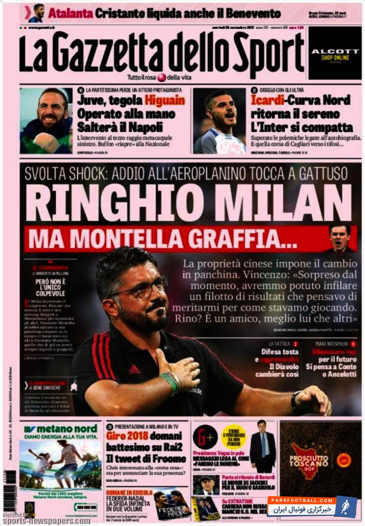 تیتر های نشریهی گاتزتا دلو اسپورت در روز سهشنبه ۲۸ نوامبر به این شرح است :