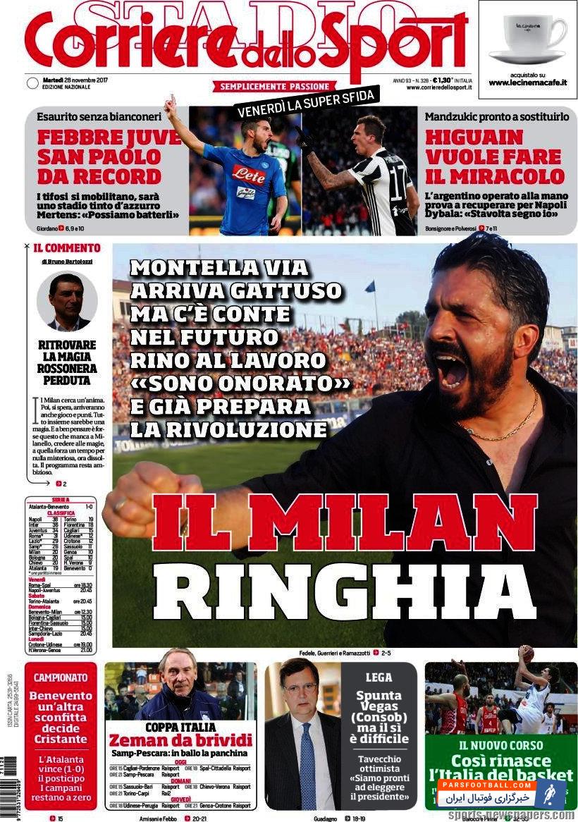 روزنامه کوریره دلو اسپورت ، سه‌شنبه ۲۸ نوامبر ؛ آماده انقلاب در میلان هستیم !