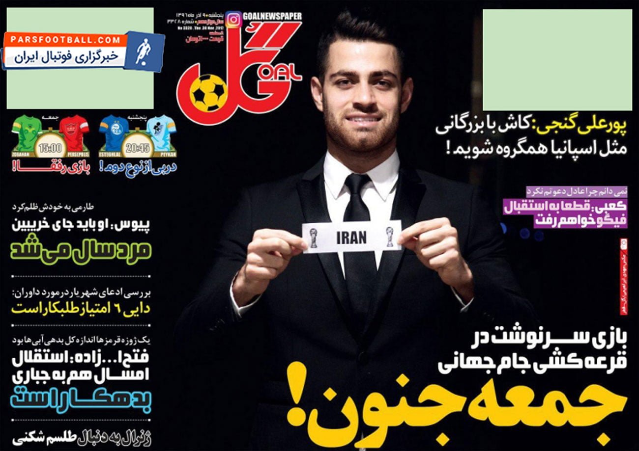 عناوین روزنامه گل در روز پنجشنبه ۹ آذر به شرح زیر است :