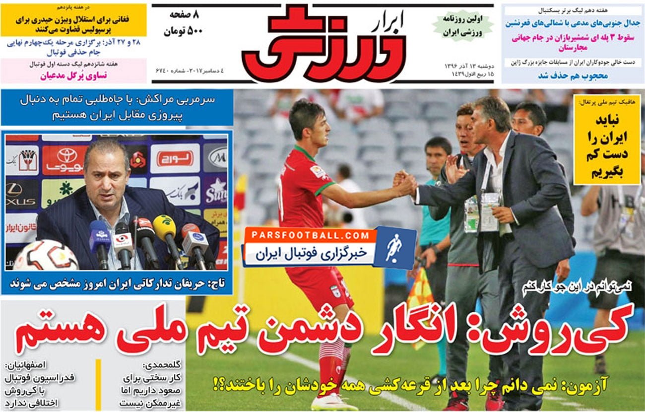 روزنامه ابرار ورزشی ، دوشنبه ۱۳ آذر ؛ انگار دشمن تیم ملی هستم !