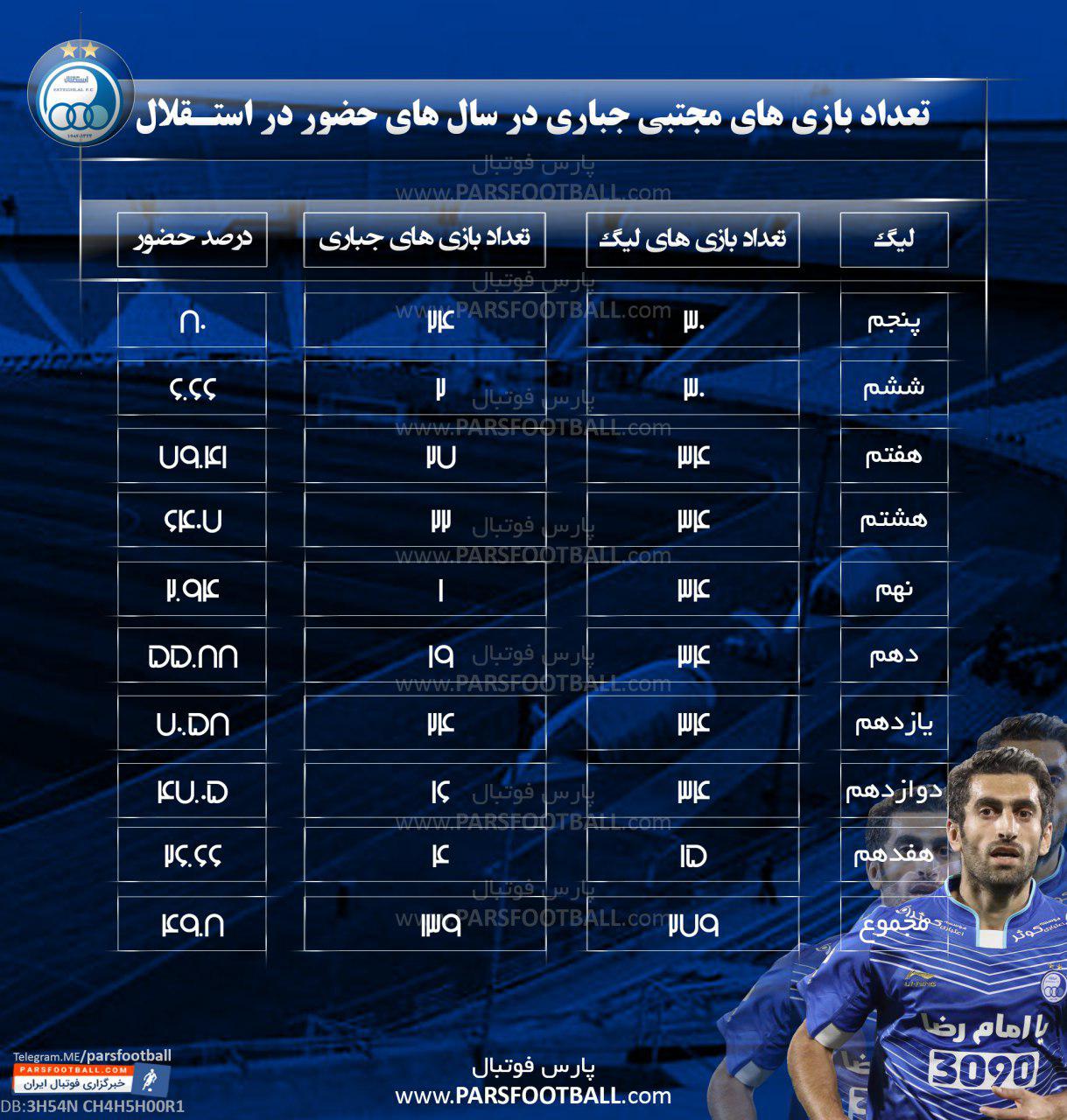 اینفوگرافی اختصاصی پارس فوتبال از بازی های مجتبی جباری در استقلال