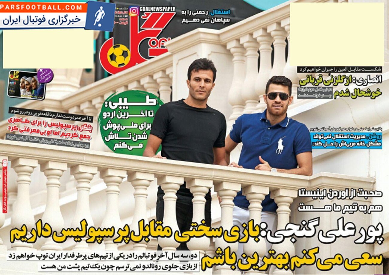 روزنامه گل ، یکشنبه ۱۹ آذر ؛ بازی سختی مقابل پرسپولیس داریم !
