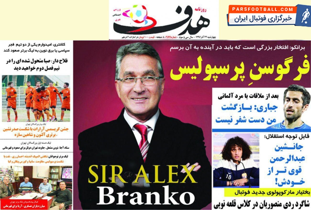 روزنامه هدف ورزشی ، چهارشنبه ۲۲ آذر ؛ فرگوسن پرسپولیس !
