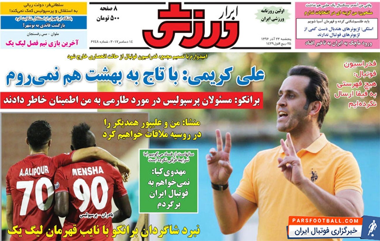 روزنامه ابرار ورزشی ، پنجشنبه ۲۳ آذر ؛ با تاج به بهشت هم نمی روم !