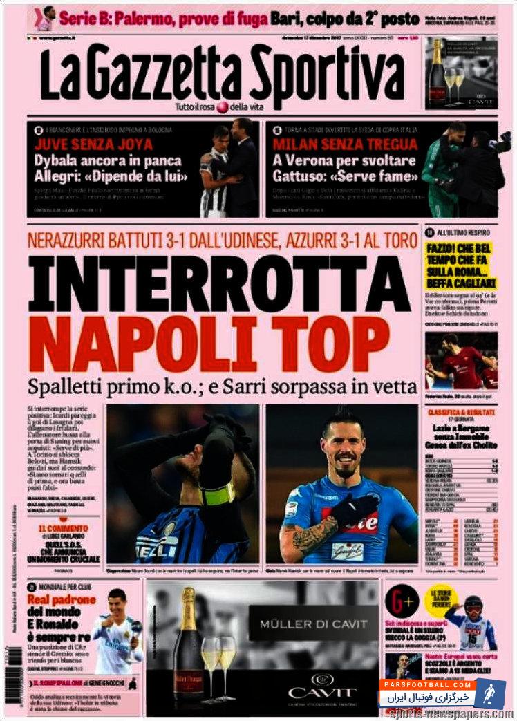 تیتر های نشریهی گاتزتا دلو اسپورت در روز یکشنبه ۱۷ دسامبر به این شرح است :