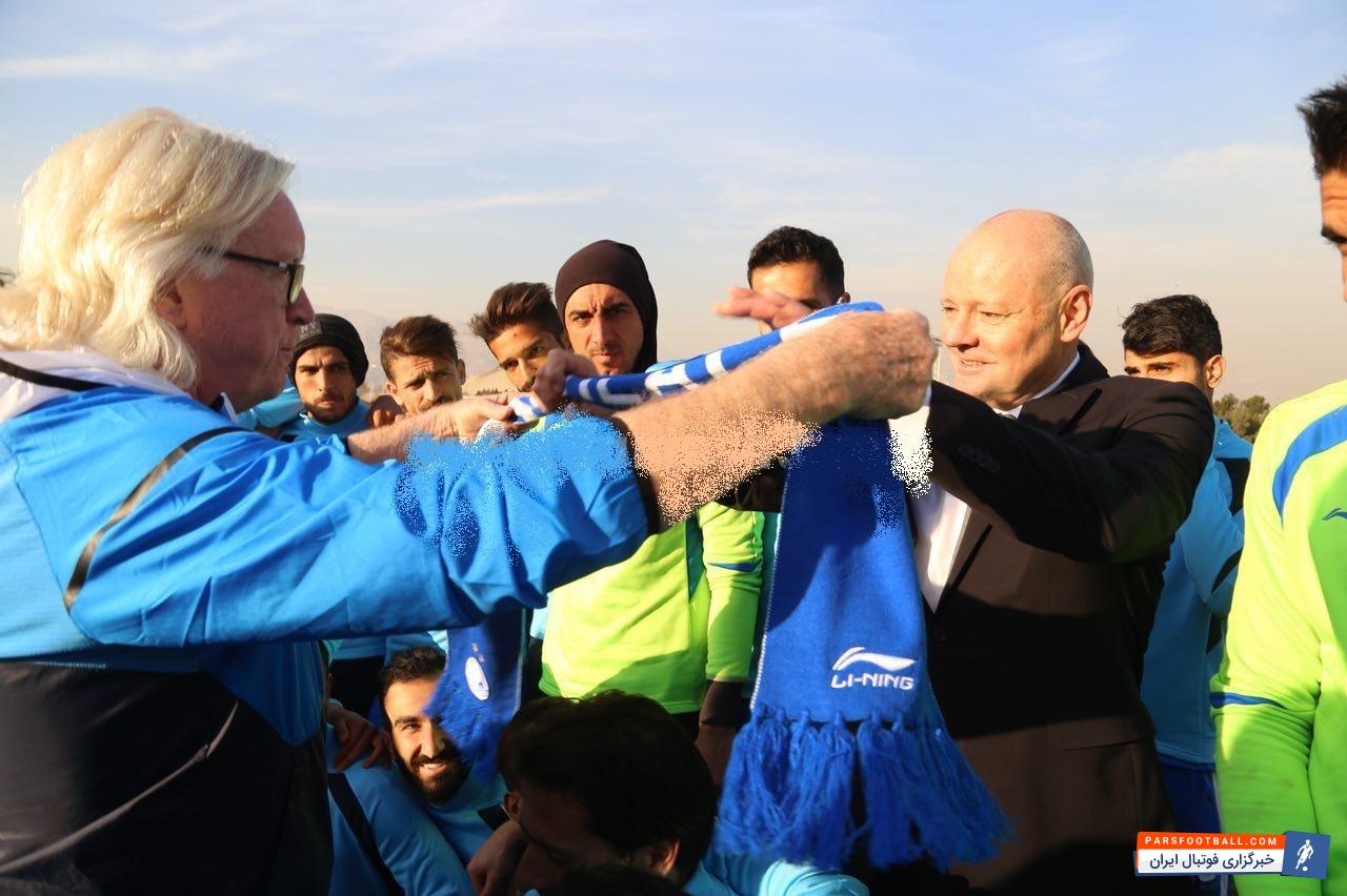برشتولد امروز به خاطر وینفرد شفر هموطنش به تمرین استقلال آمد که با استقبال گرم آبی پوشان روبرو شد.
