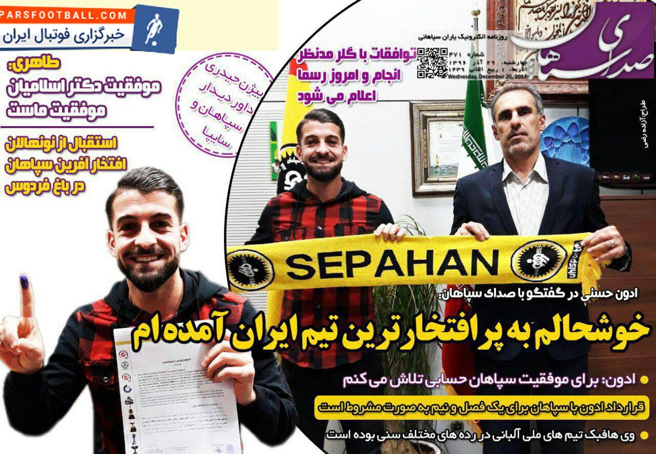 روزنامه صدای سپاهان ، چهارشنبه ۲۹ آذر : برای موفقیت سپاهان حسابی تلاش می کنم !
