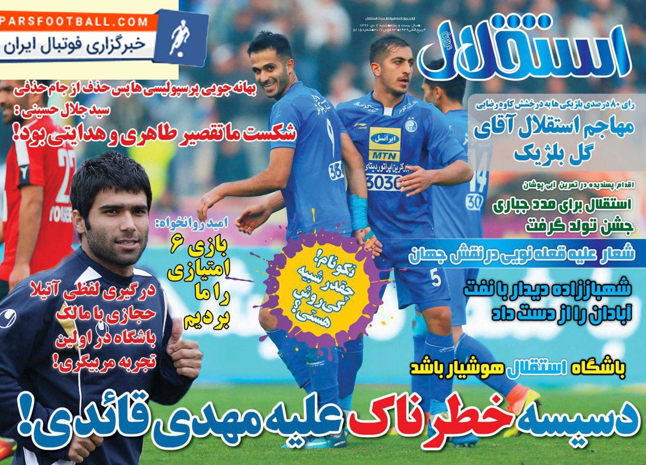 روزنامه استقلال جوان ، شنبه ۲ دی : دسیسه خطرناک علیه مهدی قائدی !
