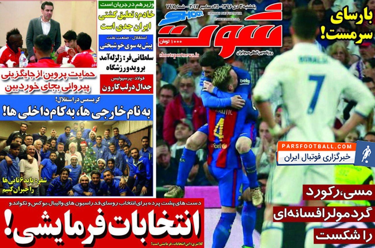 عناوین روزنامه شوت در روز یکشنبه ۳ دی به شرح زیر است :
