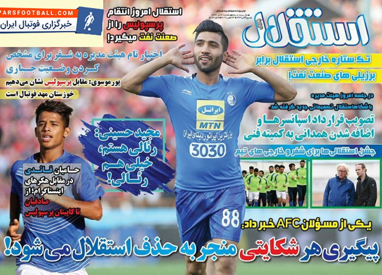 عناوین روزنامه استقلال جوان در روز یکشنبه ۳ دی به شرح زیر است :