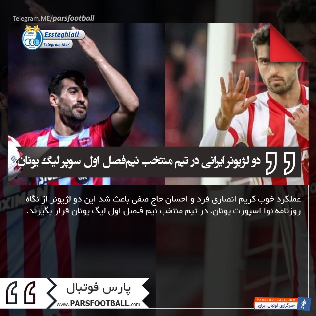 عملکرد خوب کریم انصاری فرد و احسان حاج صفی باعث شد این دو لژیونر در تیم منتخب نیم فصل اول لیگ یونان قرار بگیرند.