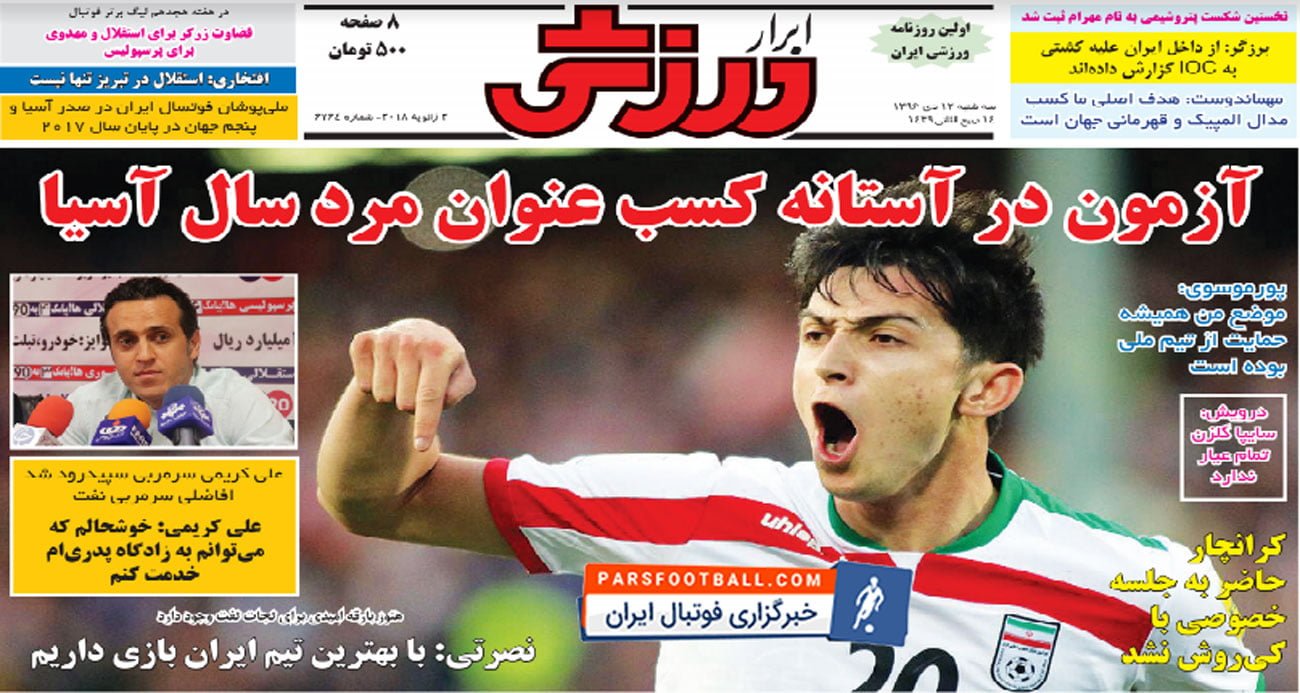 عناوین روزنامه ابرار ورزشی در روز سهشنبه ۱۲ دی به شرح زیر است :