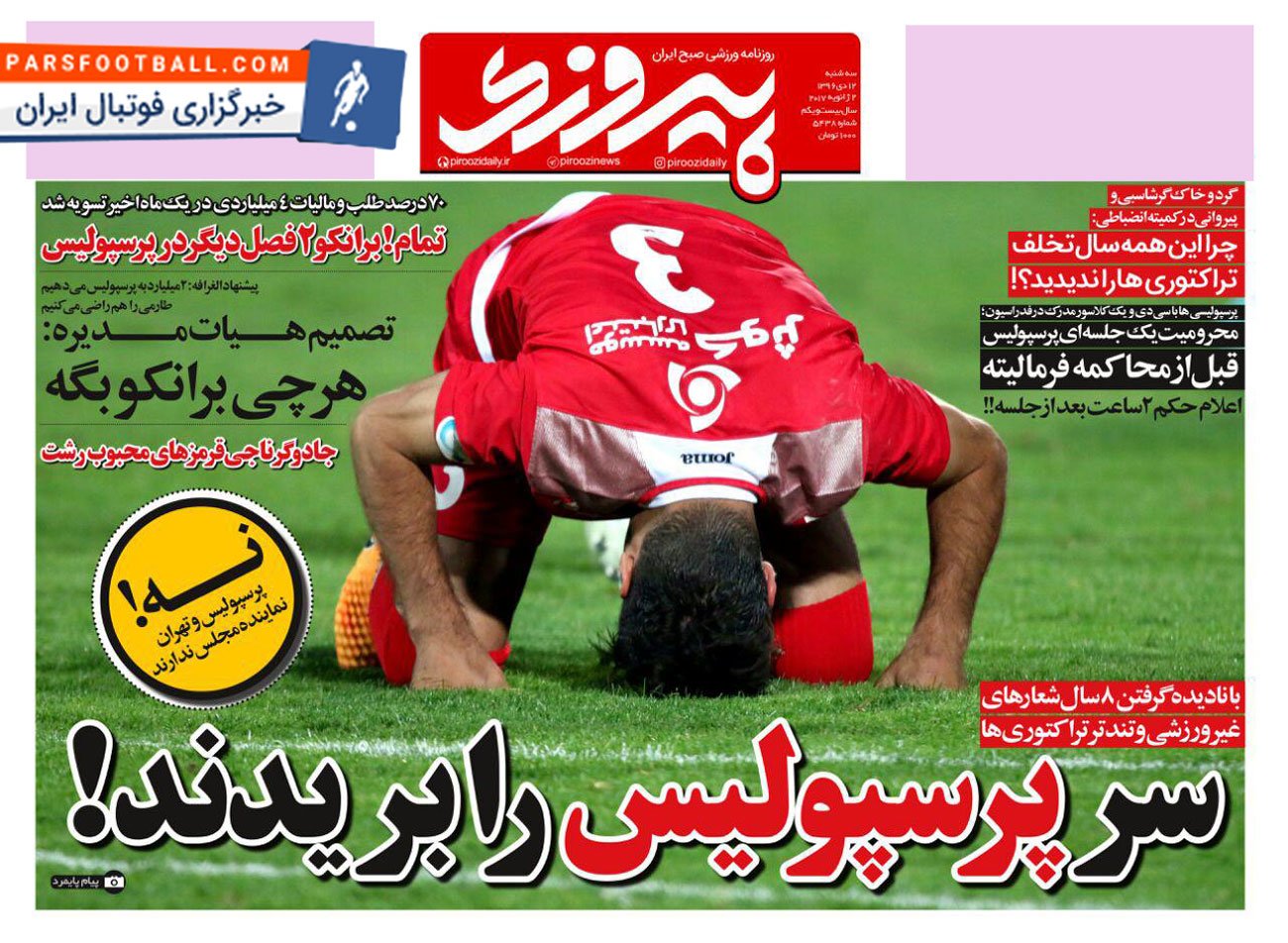 روزنامه پیروزی ، سهشنبه ۱۲ دی : سر پرسپولیس را بریدند !