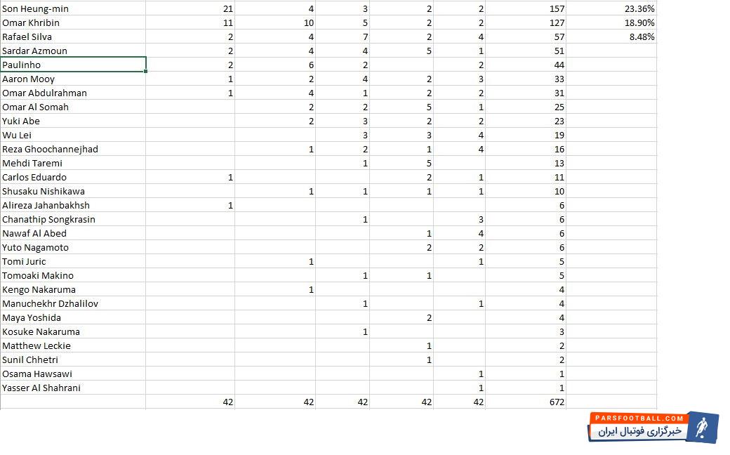 سردار آزمون بهترین گلزن تیم ملی در مسیر صعود ایران به جام جهانی با ۵۱ امتیاز در رده چهارم این جدول قرار گرفت تا بهترین رتبه را در میان بازیکنان ایرانی داشته باشد.