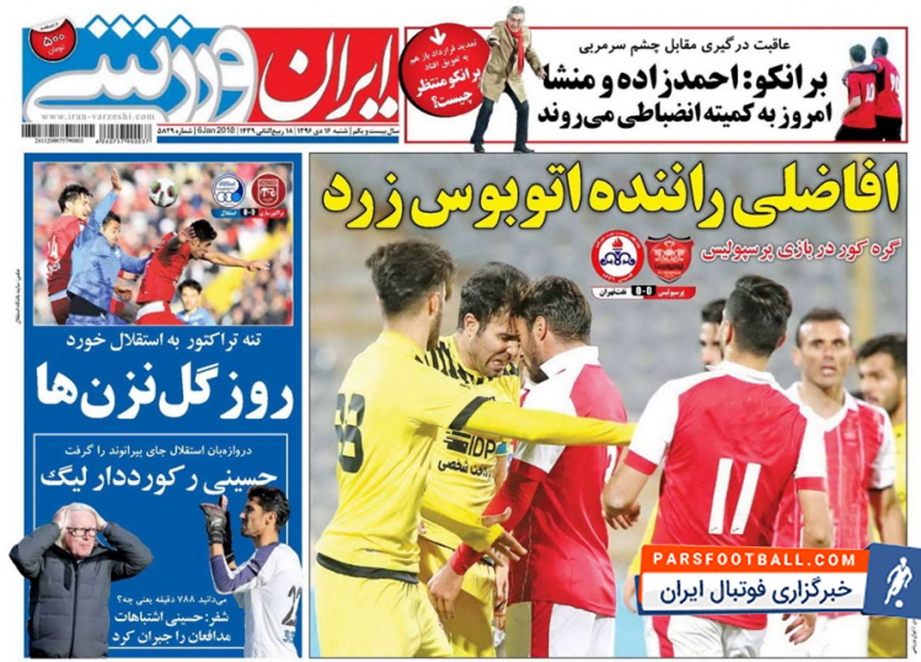 روزنامه ایران ورزشی ، شنبه ۱۶ دی : افاضلی راننده اتوبوس زرد !