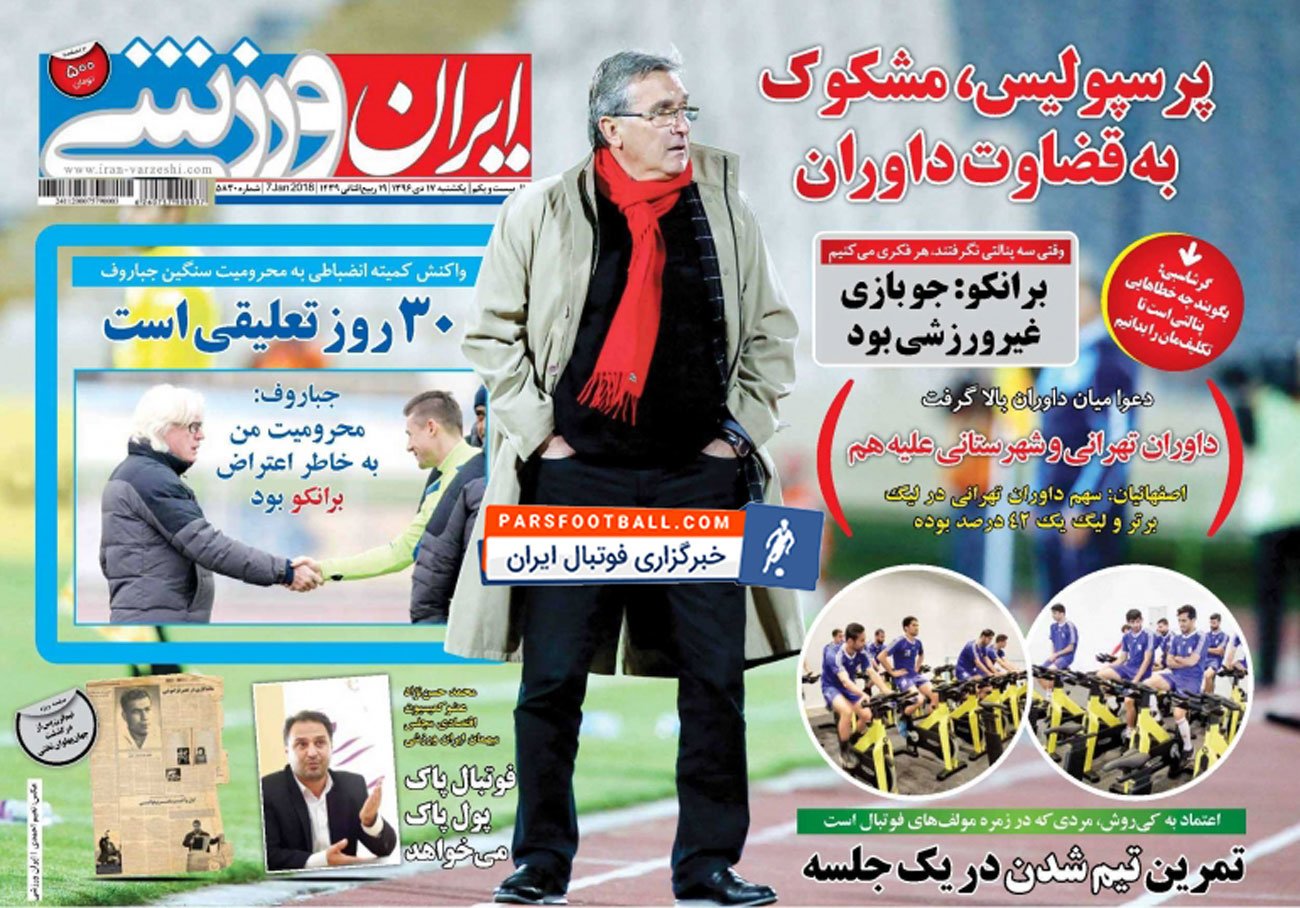 روزنامه ایران ورزشی ، یکشنبه ۱۷ دی : پرسپولیس ، مشکوک به قضاوت داوران !