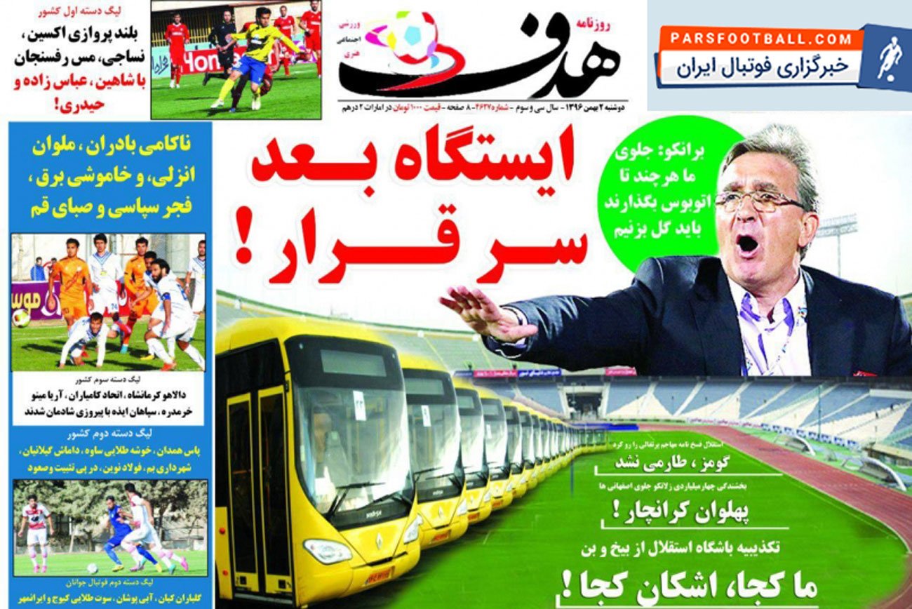 روزنامه هدف ورزشی ، دوشنبه ۲ بهمن ؛ پهلوان کرانچار !