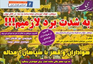 روزنامه صدای سپاهان ، پنجشنبه ۵ بهمن ؛ به شدت برد لازمیم !