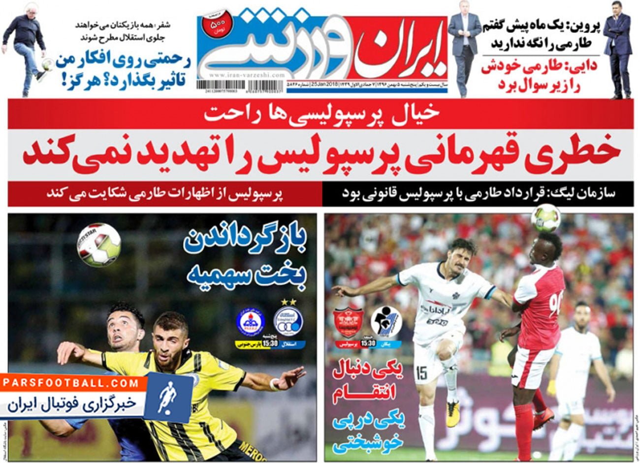روزنامه ایران ورزشی ، پنجشنبه ۵ بهمن ؛ خیال پرسپولیسی ها راحت باشد !
