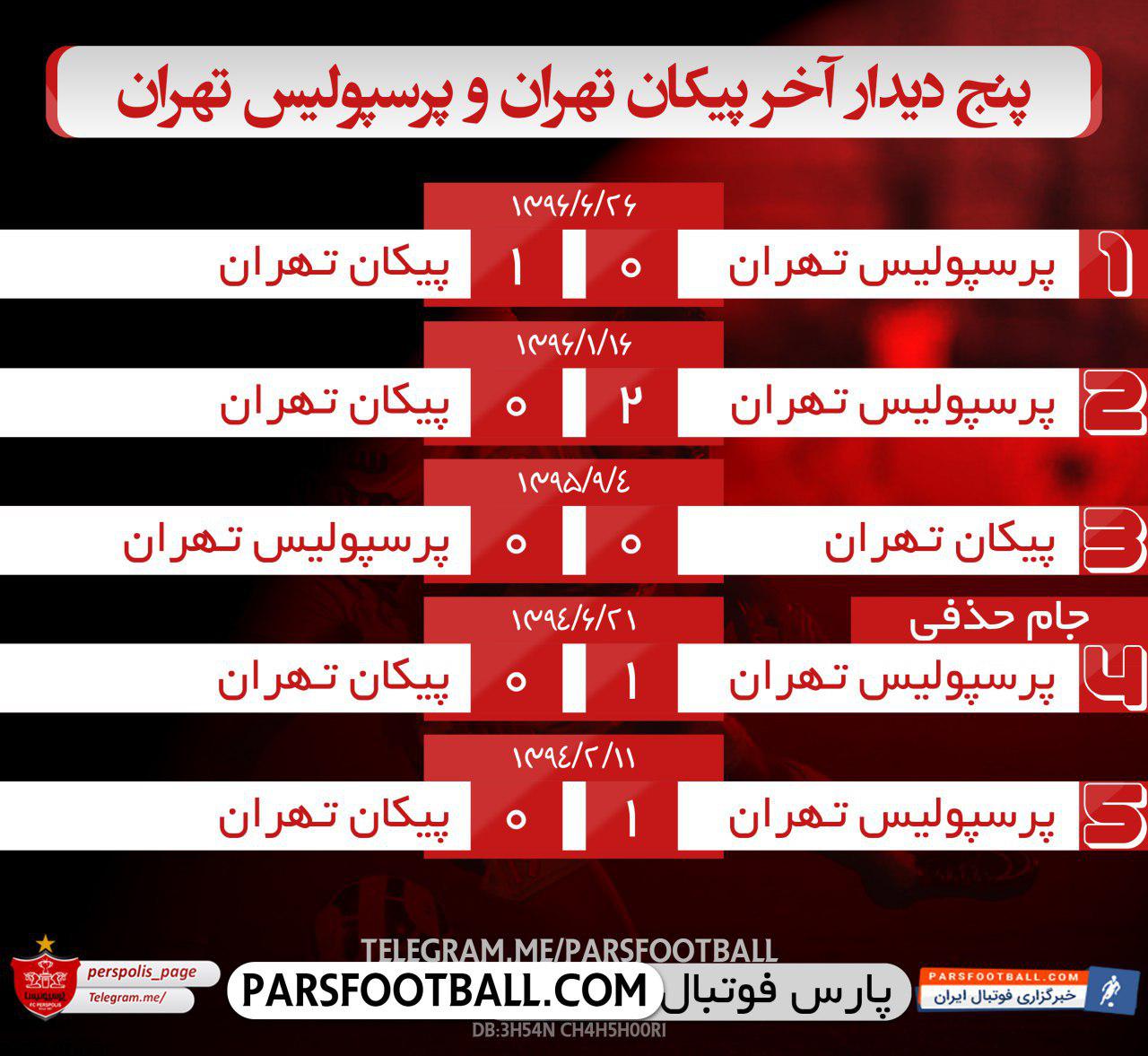 در ادامه نیز، اینفوگرافی نتایج ۵ دیدار اخیر دو تیم را برای شما آماده کرده ایم: