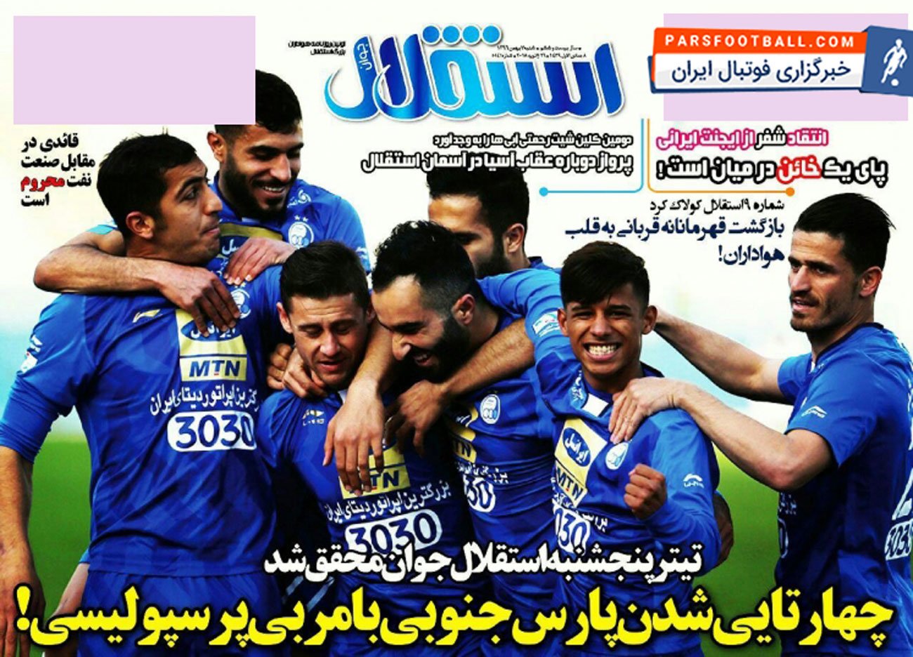 روزنامه استقلال جوان ، شنبه ۷ بهمن ؛ چهارتایی شدن پارس با مربی پرسپولیسی !
