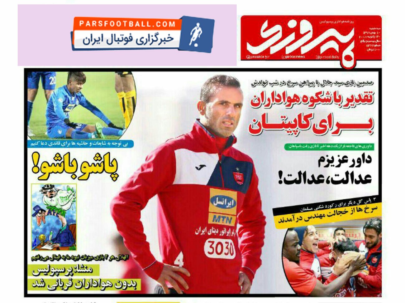 روزنامه پیروزی ، سهشنبه ۱۰ بهمن ؛ تقدیر باشکوه هواداران برای کاپیتان !